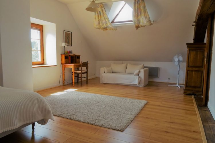 La propriété comprend une maison principale, deux granges dont l’une abrite les voitures, un ancien four à pain, un puits et un abreuvoir, une cour gazonnée, un grand pré, un grand verger et un potager. Le gite pour 6 personnes se situe au premier étage de la maison. Des espaces extérieurs avec deux tables de jardin, des chaises longues, une table de ping-pong et un barbecue sont à votre disposition. Loin des routes, Boisseau offre un espace sécurisé et tranquille pour toute la famille, animaux compris !